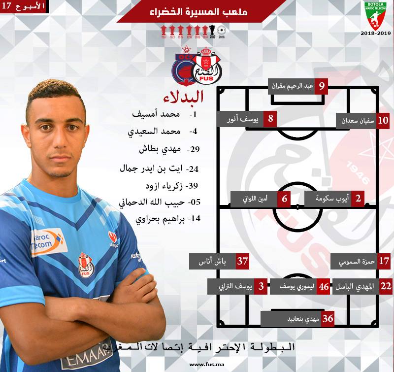 تابعوا التشكيلة الرسمية للفتح الرياضي أمام مضيفه أولمبيك آسفي، في المباراة التي ستجرى في تمام الساعة 15 من عصر اليوم، بملعب المسيرة،برسم الجولة 17 من الدوري المغربي للمحترفين اتصالات المغرب.